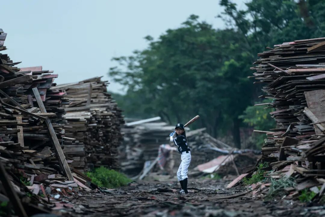 9岁女击球手王晓荃独自训练,为了“挥出最漂亮的全垒打”。/《回声》