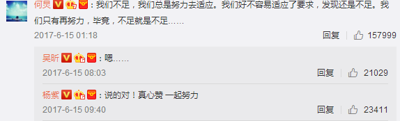 而在各个明星好友前来支援的评论中,这两条,最有意思了。
