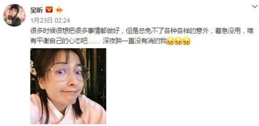 节目取消后,吴昕还发文说:“这一年,怎么那么辛苦那么难……”