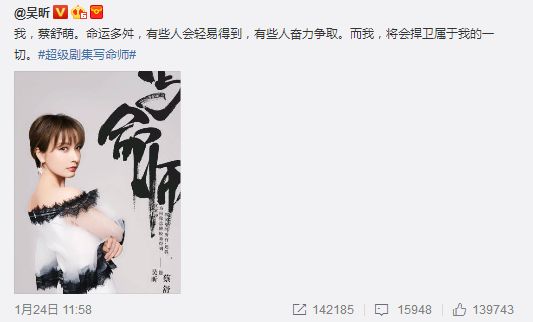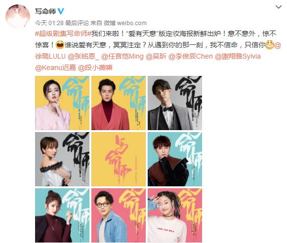 大概就是这个吧:前一阵吴昕在微博里po出一张图,说自己将要在《写命师》里饰演蔡舒萌!