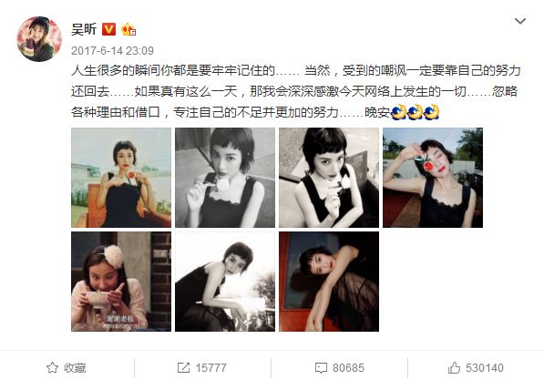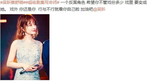 最后,至于吴昕到底能不能熬到演技受到认可的那一天……粉丝的话有一些还是可以听听的,比如这句: