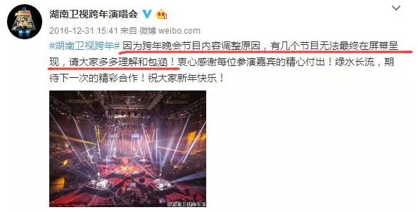 也不怪大家猜测纷纷,还记得去年的跨年晚会,因为节目时长的缘故,湖南卫视决定砍掉几个节目。