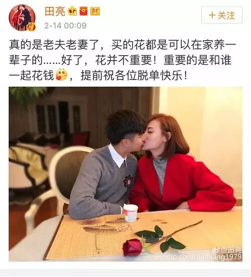 还有”老夫老妻“田亮叶一茜夫妇,这种直接亲上的....算了情人节,不报警了