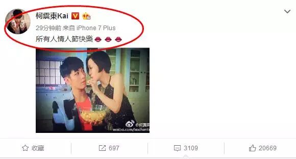 不过最让蜀黍吃惊的是,很久没有消息的柯震东竟然也在情人节发微博了,大家看一下
