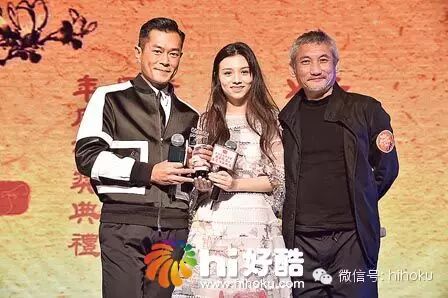 古天乐(左)与徐克(右)颁发“最佳女主角”奖给春夏(中),她形容得奖心情好激动。(摄影﹕孙华中)
