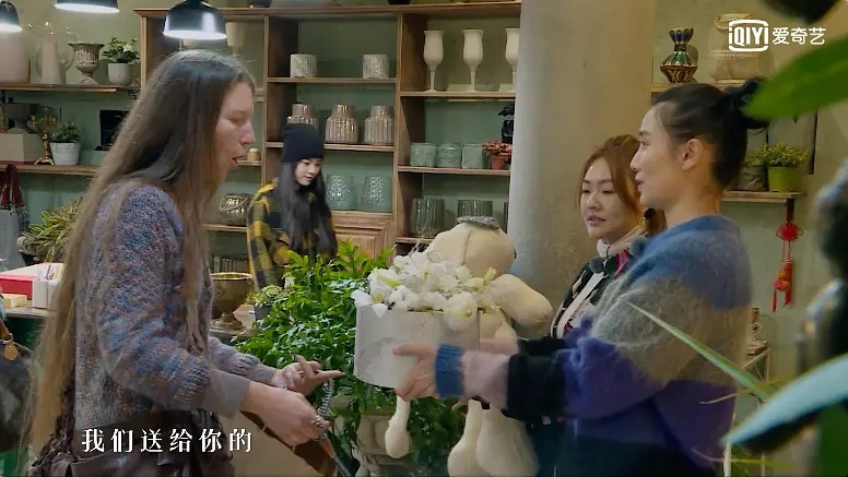 做生意卖花,她不拘小节,有卖也有送,给老外顾客打点得乐乐呵呵。