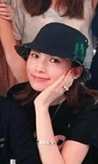 坐在前排的四个人中,最右侧就是林志颖的老婆陈若仪。她头戴黑色渔夫帽,手扶脸庞,笑容优雅温柔。