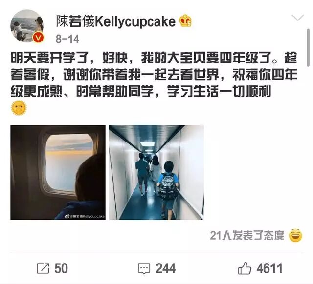 除此之外,陈若仪也是个幸福的妈妈,她经常晒出三个儿子的日常,大儿子Kimi要上四年级了,对于对于儿子的出现,她表示感恩。