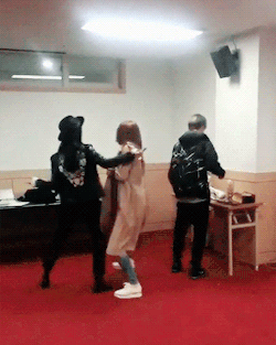 哈哈,开个玩笑,其实事实是这样的。在后台里,宋茜欧尼和秀晶妹子玩的很开心于是就演起了戏,而秀晶张开风衣扮演猥琐男子,我们宋茜和AMBER是失声尖叫不敢看的少女,哈哈,果然三个女人一台戏啊。