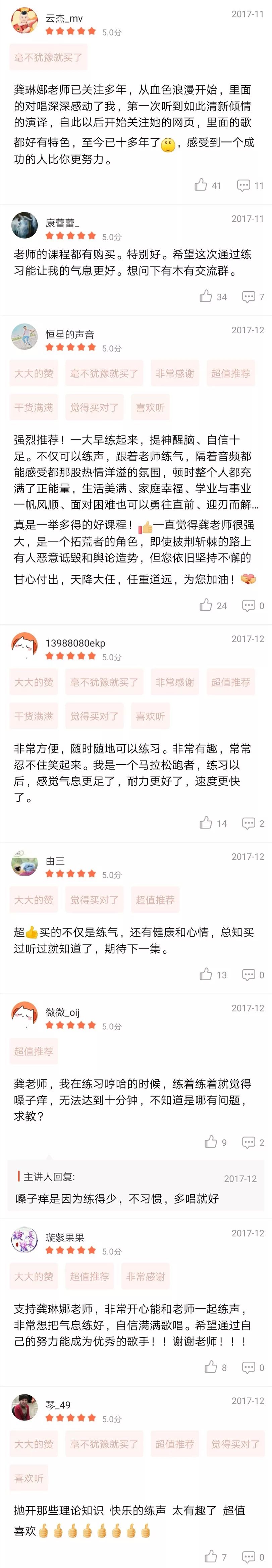 除了现实教课的经验以外,龚琳娜在喜马拉雅上有两档教唱节目《跟着龚琳娜来练声》、《跟着龚琳娜学唱歌》(可点击了解)都大受好评!