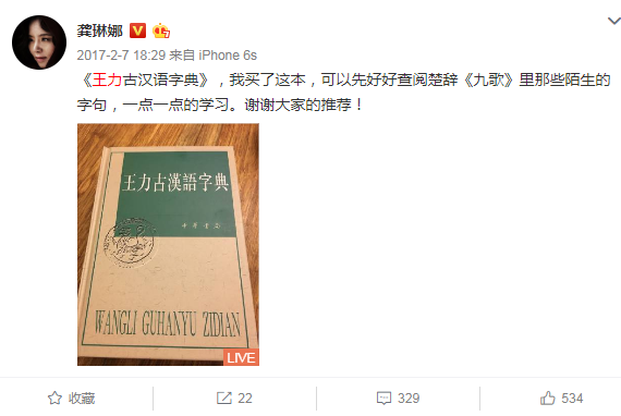 但即便遇冷,龚琳娜也没有丧气,这几年读的最多的就是古诗词,这些古人言竟然给了龚琳娜最大的精神力量。