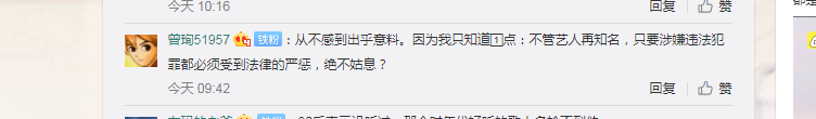 绝大部分网友表示不管是谁,触犯法律行为零容忍: