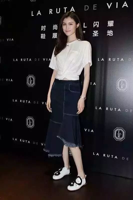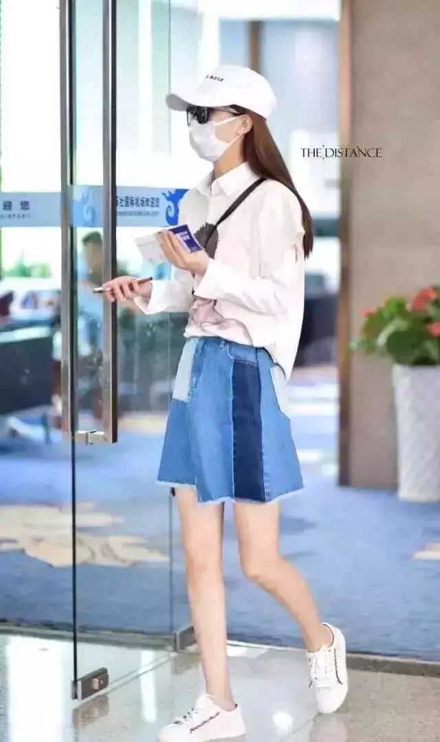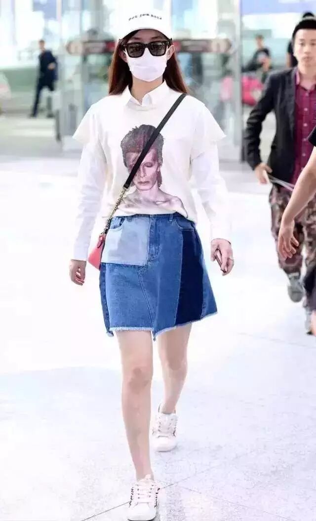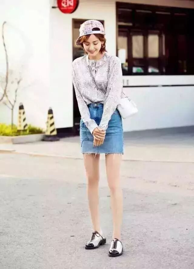 赵丽颖这个拼色牛仔裙成功抢镜