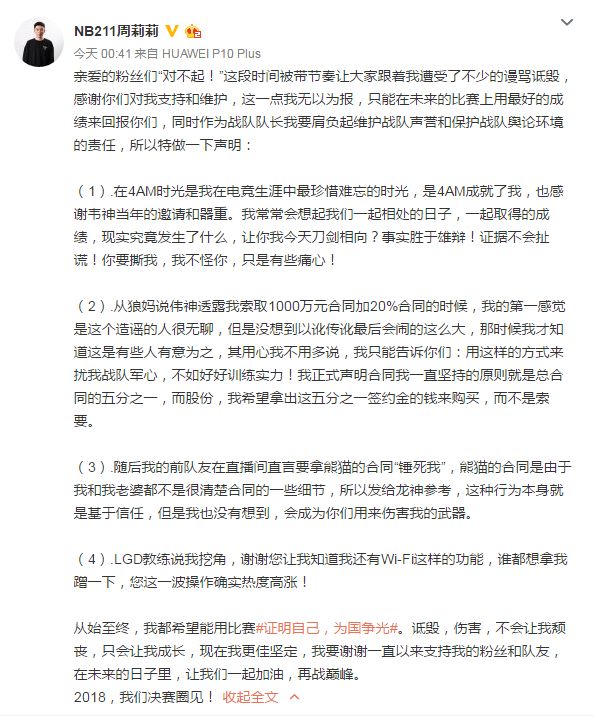 ❷ 韦神正面回应周莉莉离队事件