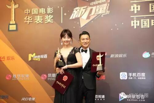 导演王家卫 来源:组委会提供 中新网北京6月25日电(记者 娄晓)6月24日晚,第16届中国电影华表奖颁奖中国电影新力量推介纪念建党95周年重点影片推介典礼在北京怀柔雁栖湖国际会展中心举行。成龙、周润发、刘德华、葛优、刘烨、徐克、丁晟、宁浩、管虎、刘震云等华语电影大咖均随剧组踏足红毯,引得阵阵欢呼。现场共颁出20项大奖,《狼图腾》、《智取威虎山》等10部影片获得优秀故事片奖,刘德华、白百何分别获得最受关注的优秀男、女演员奖。 郑钧现场献唱 来源:主办方提供 姜文、王家卫献“脱口秀” 黄子韬节目被砍 本届华表奖最具看点的场面非嘉宾的才艺表演莫属,此前曾有媒体报道,以低调著称的导演王家卫将首次表演脱口秀,因此,王家卫一上台便调侃道“我看新闻说我要做脱口秀被吓到了。”王家卫说,拍电影没有高低贵贱之分,选择自己的路,每个时代都是出其不意的,有自己的魅力。 此外,王宝强“大闹天竺”带来异域风情印度舞蹈,让观众忍俊不禁。郑钧则携动画作品《摇滚藏獒》登上舞台,现场演唱《热爱》。而姜文也在随后的“脱口秀”自称是被长江后浪推着不知去向何处的“老力量”,“趁着年轻拍点真想拍的,因为年轻真不是优势,当你以为自己年轻,没想到自己站在这成老力量了。” 人气偶像黄子韬携其首部领衔主演的青春悬爱电影《夏天十九岁的肖像》及成龙领衔、由他联袂主演的动作喜剧巨制《铁道飞虎》两部新作亮相。此前,有媒体报道他将现场演唱为《夏天十九岁的肖像》而创作的主题曲《十九岁》,而黄子韬工作室在华表奖红毯开场前就发布微博称,“很遗憾这次无法演唱《十九岁》,不过请大家依旧期待今晚的红毯亮相吧。” 刘德华、白百何摘得奖杯 来源:主办方提供 刘德华白百何分获影帝影后 刘德华凭借电影《失孤》获得优秀男演员,上台前与张涵予、王中磊相拥。他表示演农民是我一辈子最大的幸福,通过拍摄《失孤》对社会有了更多关注,应该更多的回馈社会,因此自己每隔几部戏就会选择一个社会题材电影来拍。 优秀女演员则由白百何获得,她凭借《翻滚吧,肿瘤君》中熊顿一角收获此奖。白百何哽咽坦言自己何德何能,眼角不时泛泪光。她感谢把这份信任交到她手上的工作人员,表示自己会在好演员这条路上继续努力。她同时向《翻滚吧,肿瘤君》的漫画作者熊顿表达感谢,“最后要感谢的是熊顿,熊,我们拿奖了,抓紧时间燥起来! ” 据悉,本届中国电影华表奖与中国电影新力量合并举办,独创“M+N”推广模式,联合视频门户、视频网站及手机直播平台进行全网直播,在线观看人数创历届之最。通过直播,观众们不但可以身临其境般的感受现场盛况,更可与现场嘉宾“零距离”交流互动,让本届华表奖真正做到接上地气,成为一场全民参与共襄盛举的电影盛事。 华表奖获奖名单 一 优秀故事片奖: 《狼图腾》 、《智取威虎山》、《战狼》、《百团大战》、《捉妖记》、《破风》、《解救吾先生》、《失孤》、《亲爱的》、《西游记之大圣归来》 二 优秀农村题材影片奖 《真爱》 三 优秀少数民族题材影片奖 《天上的菊美》 四 优秀少儿题材影片 《家在水草丰茂的地方》 五 优秀青年创作影片奖 《滚蛋吧!肿瘤君》 六 优秀音乐奖 陈其钢《归来》 七 优秀摄影奖 赵非《太平轮•彼岸》 八 优秀编剧奖 邢原平、贾茹 《土地志》 九 优秀导演奖 徐克《智取威虎山》 十 优秀女演员奖 白百何《滚蛋吧!肿瘤君》 十一 优秀男演员奖 刘德华《失孤》(完)