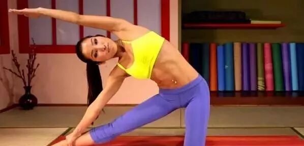 2、右腿向右侧伸展,保持与躯干、左膝都在一条直线上。脚趾朝右,右腿保持绷直