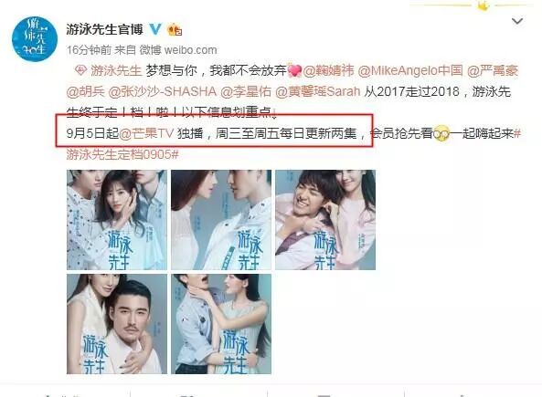看了这些是不是觉得非常想看这部剧了,毕竟看了各位主演颜值也是非常高的,所以在近日这部剧额官博也是终于发博表示:9月5日起芒果TV 独播,周三至周五每日更新两集,会员抢先看。这样的惊喜是不是特别意外,特别惊喜。