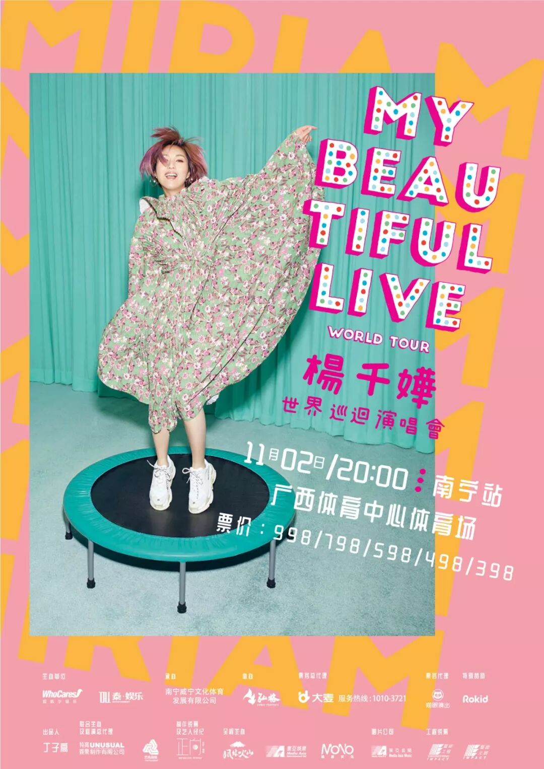 分享自己的音乐和经历给大家,是杨千嬅一直以来的心愿。此次全新巡回演唱会《My Beautiful Live(美丽人生)》从广州出发,途径武汉、深圳、北京、成都、重庆、南宁等内地城市及澳大利亚、马来西亚、美国、加拿大等海外地区······