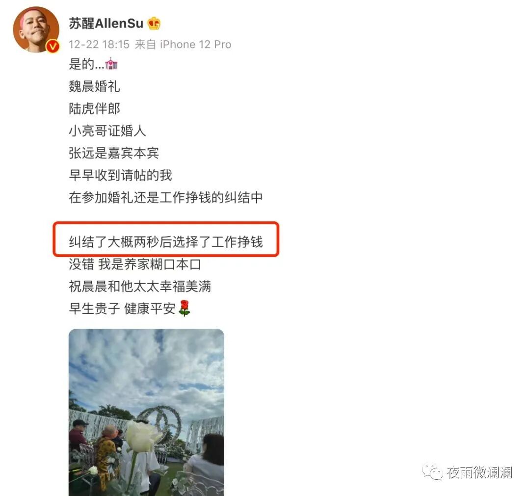 就连魏晨的婚礼,他也因为要赚钱,选择了不去。