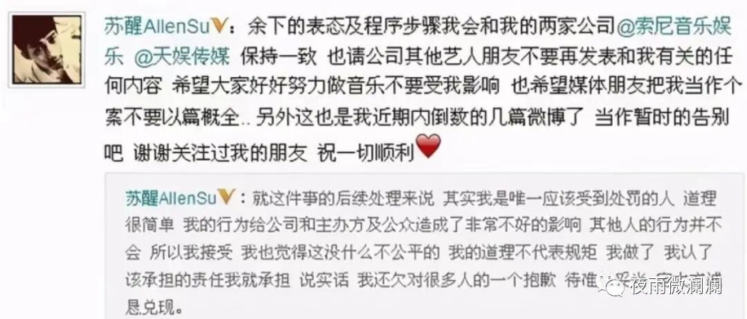 之后,李炜成了抢兄弟女友的渣男,苏醒成了背锅的老实人。气不过的苏醒也曾在网络上用《苹果的故事》暗喻,但这些都不重要了,为了把影响降到最低,公司天娱对两人都进行了”雪藏”处理。