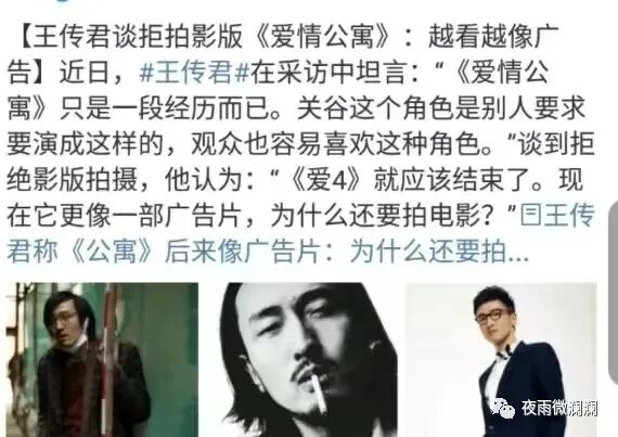 怎么可能会与他无关呢?王传君就是靠《爱情公寓》火起来的,这部剧的标签会伴随他一辈子,他不可能甩掉的。