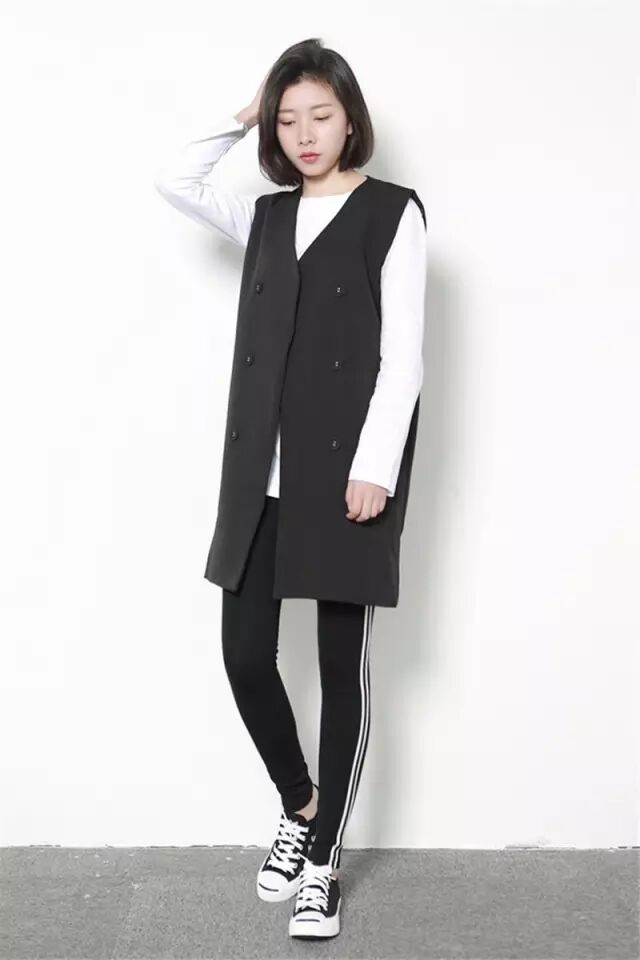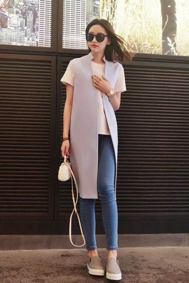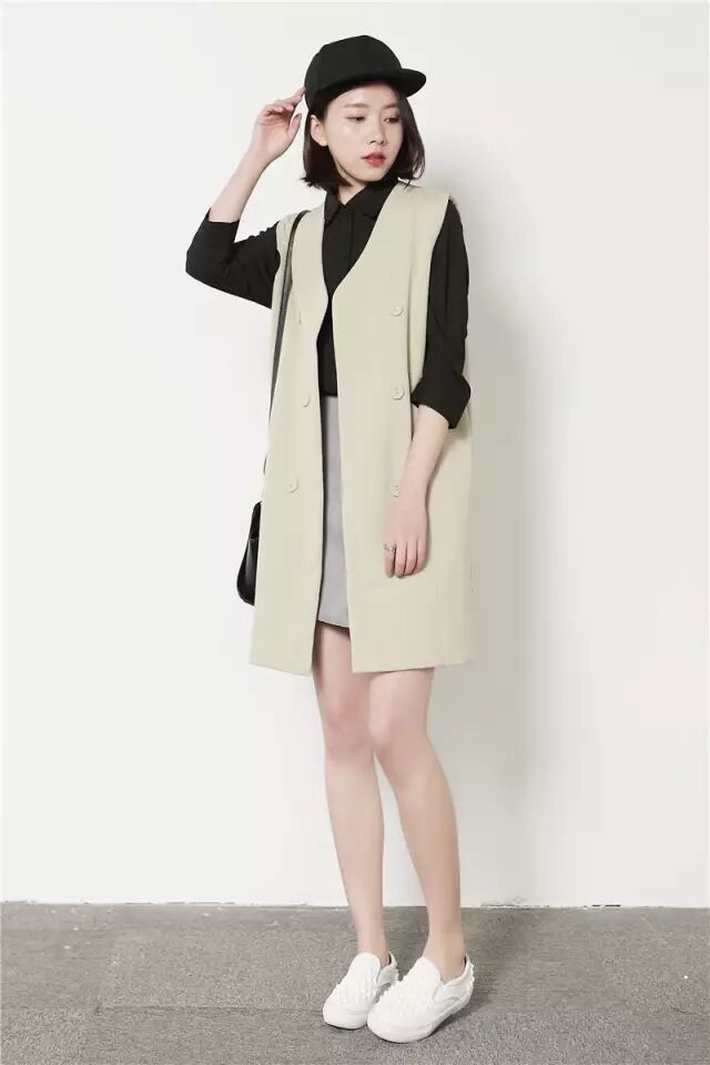 马甲的长度也有很多,娇小的姑娘可以选我这种刚过臀部的款式,内搭短裤、a字裙效果也很棒,还替你挡住了不完美的臀型呢!