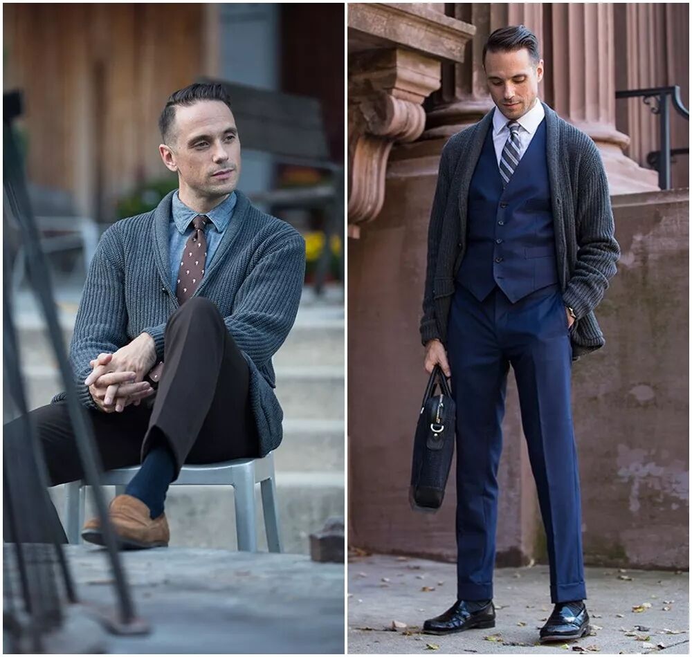 很推荐直男们来一件针织开衫,一年可以穿三季。