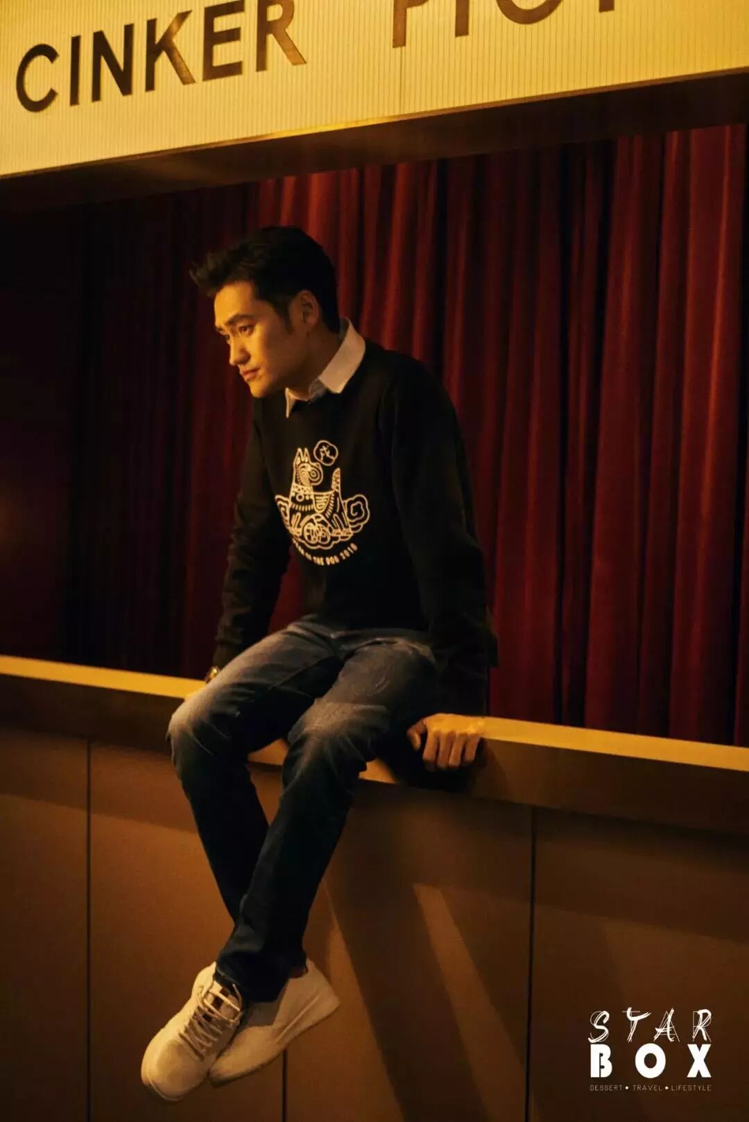 除了林更新穿过的狗年贺岁款帽衫,袁弘还穿过这件黑色的卫衣,像婆婆前面说的那样叠穿了浅色的衬衫。