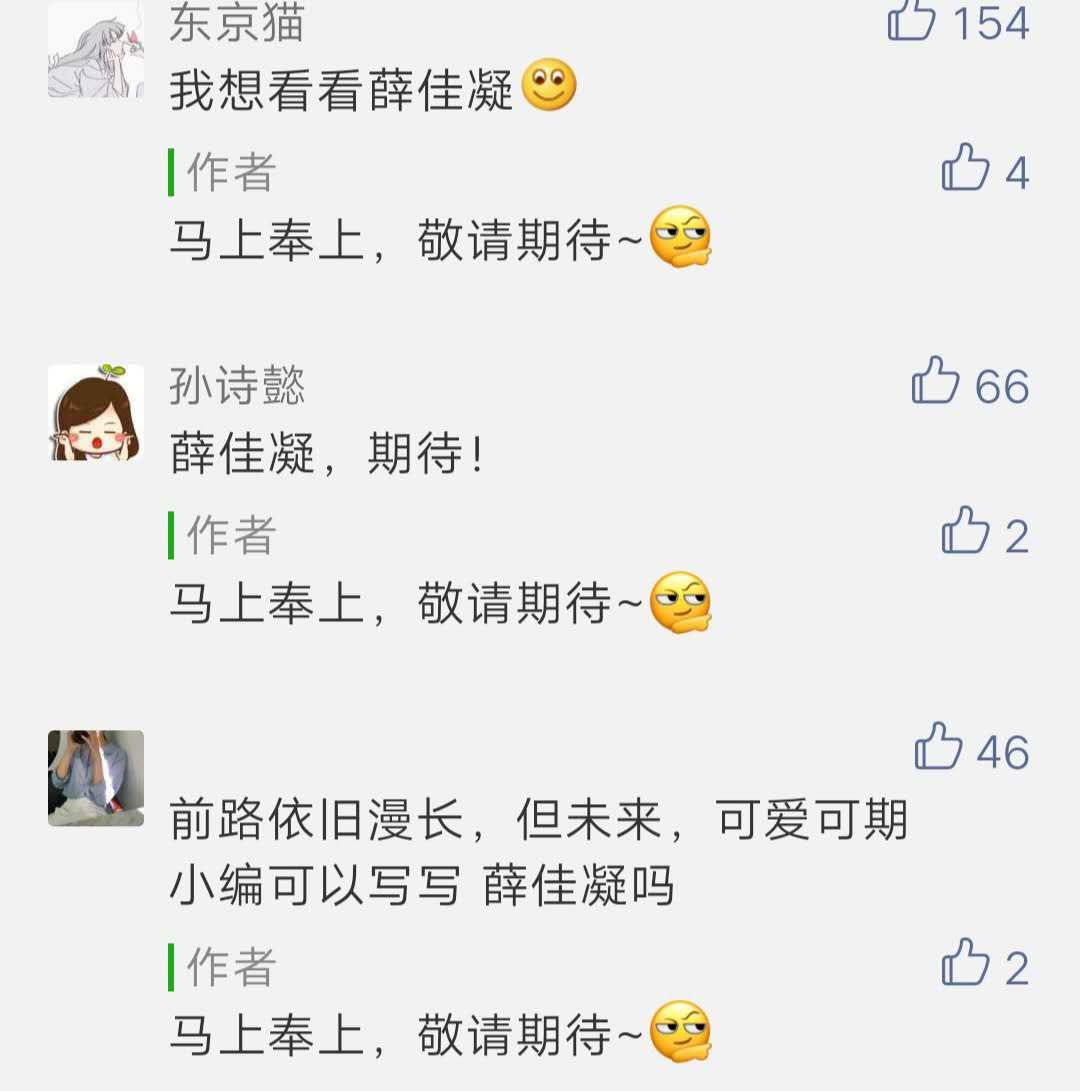 池姐本在疯狂地赶另一篇稿,收到如此热情的留言,立马笔锋一转,转头写起了薛佳凝。