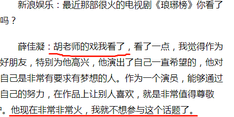 记者只要遇到薛佳凝,就会提及胡歌。
