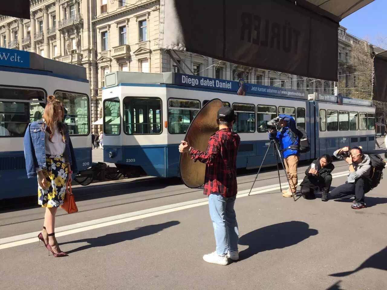 图为3.28日在苏黎世班霍夫大街现场抓拍工作照