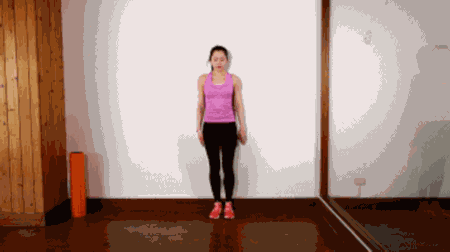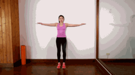 第四步:双脚自然分开站立,双手侧平举,手心向上,双臂做上下运动。