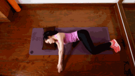第三步:跪撑在地上,一手弯曲扶脑后,抬起手肘,然后放下。