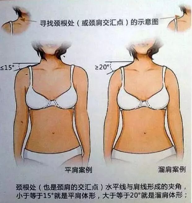 所谓溜肩,就是和一般的肩膀形成的角度更大,让肩膀呈现一种垮下去的状态,毫无肩颈曲线。