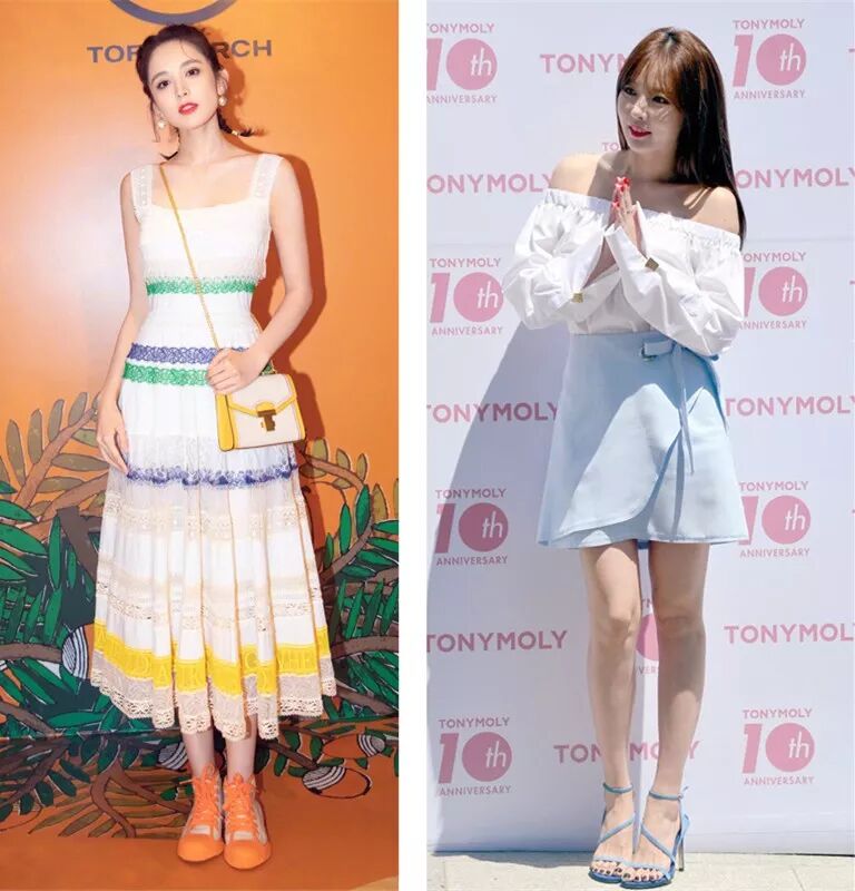 溜肩这个问题不但可能造成你的锁骨不明显,并且穿衣效果也真的差很多!同一件衣服的对比,你能想到杨紫因为肩部线条就完美的赢了天仙姐姐么?