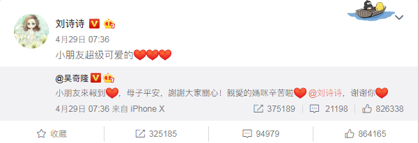之前你们的女神高圆圆才官宣怀孕,昨天我们可爱的刘诗诗也终于当妈妈啦~