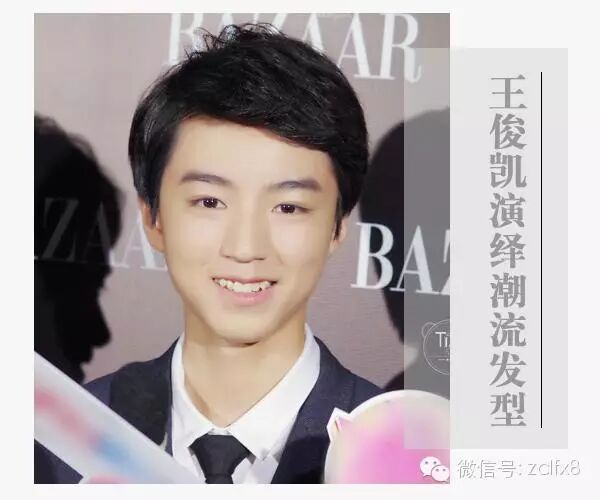 这款细碎修剪的过眉刘海搭配乌黑柔顺的短发造型,让王俊凯犹如邻家男孩一般,让人有一种亲和力十足的感觉。