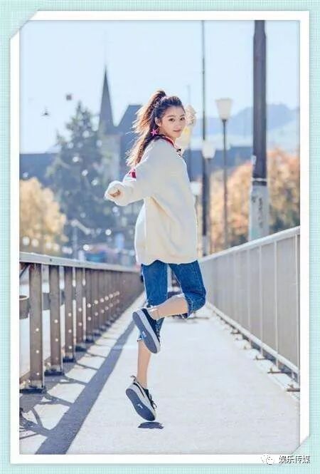 刚刚二十出头的关晓彤,身上穿着简练还带有一点点的婴儿肥的感觉,如果她俩之间没有对比的话,这样的她看起来也是比较的苗条了。