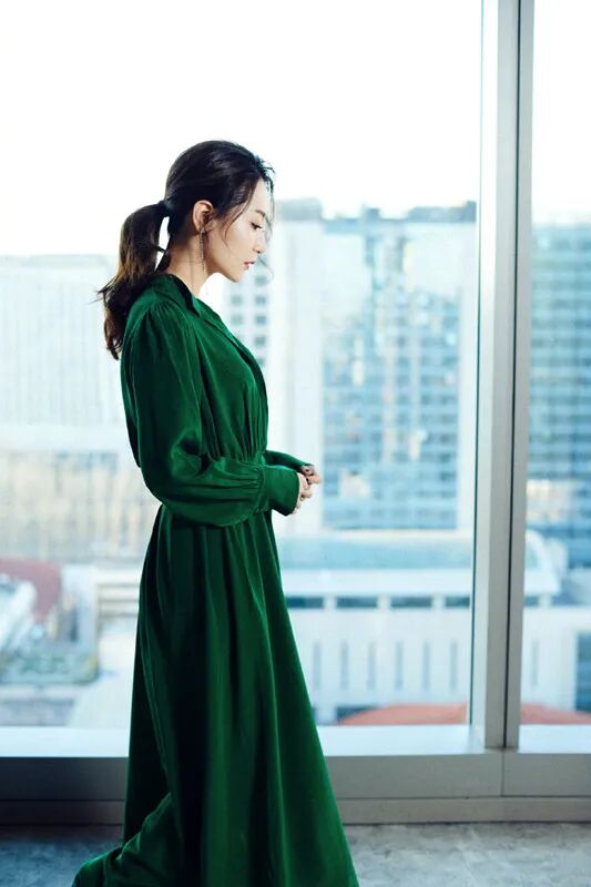绿色的单品总是充满无限的生机与活力,并散发出经典复古的韵味。白冰穿一袭绿色连衣裙,简单的扎低马尾,上演侧颜杀的惊艳之美。白冰的气质与生俱来,无需过多雕琢,即使是简单单品也能打造出优雅时髦范。