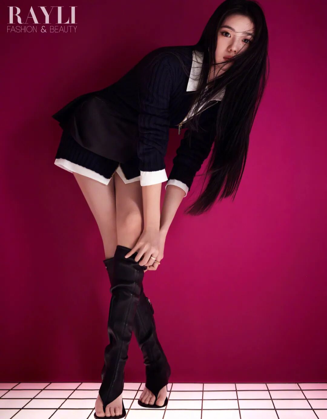 拍摄准备就绪,她一个人站上灯台。无须指导和示范,她便随着现场的音乐节奏开始律动,静或动,微笑或淡然,出片率惊人,镜头感这种玄妙的东西,在她身上能切实地感受到。刚才在台下那一点点的紧绷和害羞已全然无踪,她自由自在地在镜头前展示着自己,这一刻的灯光和目光都为她而来。