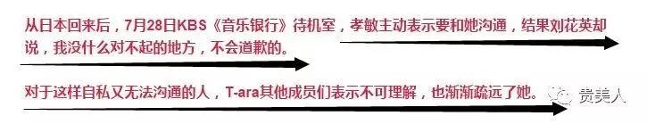 然后是当时担任队长的朴昭妍,她在上某个节目聊到“刘花英事件”时说:“T-ara和花英从来都不是水和油的关系。” 间接否认了T-ara排挤刘花英的说法 ↓↓