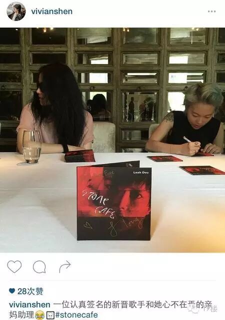 发布图片的网友还打趣称:“一位认真签名的新晋歌手和她心不在焉的亲妈助理!”
