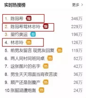 小编到微博一看,“陈冠希”、”陈冠希骂林志玲“、“林志玲”都已上了热搜榜,而且加了”爆“字,这是要爆炸啊!