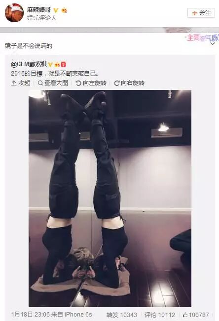 前不久,人气歌手邓紫棋在自己的微博上晒出了一张练习头倒立的照片。与其说是晒照不如说是赤裸裸的秀身材: