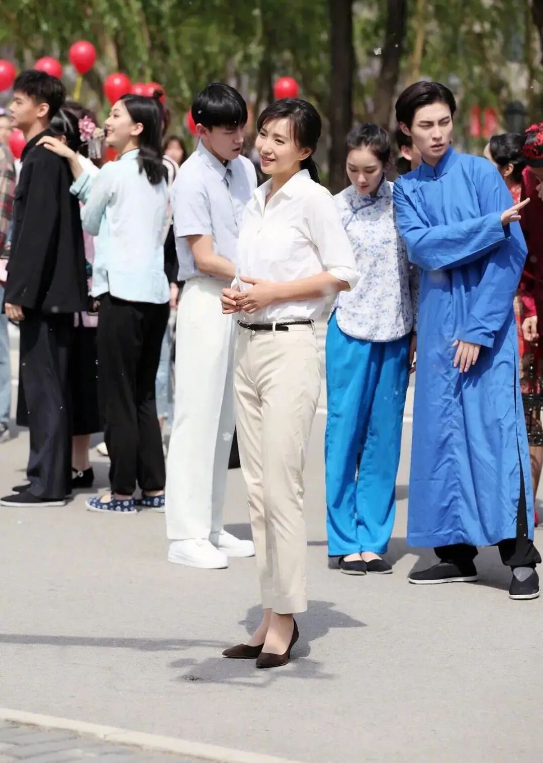站在一众年轻的俊男美女中,她一身白衬衫西装裤,却异常亮眼。