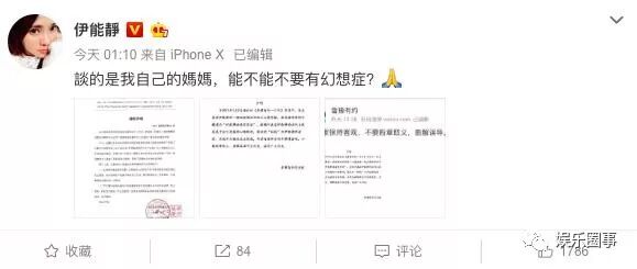 伊能静本人附文:“谈的是我自己的妈妈,能不能不要有幻想症?”