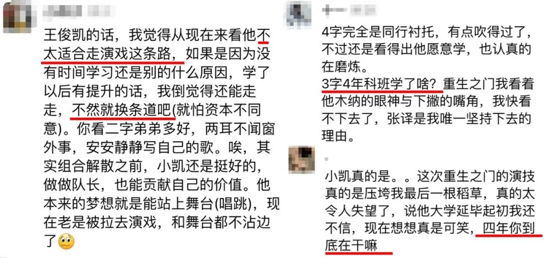 看飘前几天写中戏96班时,评论区中高频出现对王俊凯的劝退建议和“四年都干嘛了”的质疑,或者已说明一些问题。
