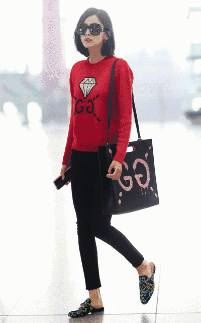 最近变美了的古力娜扎除了满身个性十足的GUCCI小精灵涂鸦系列衣服鞋子包包外,这条修身十足的九分裤也是十分抢镜呀!