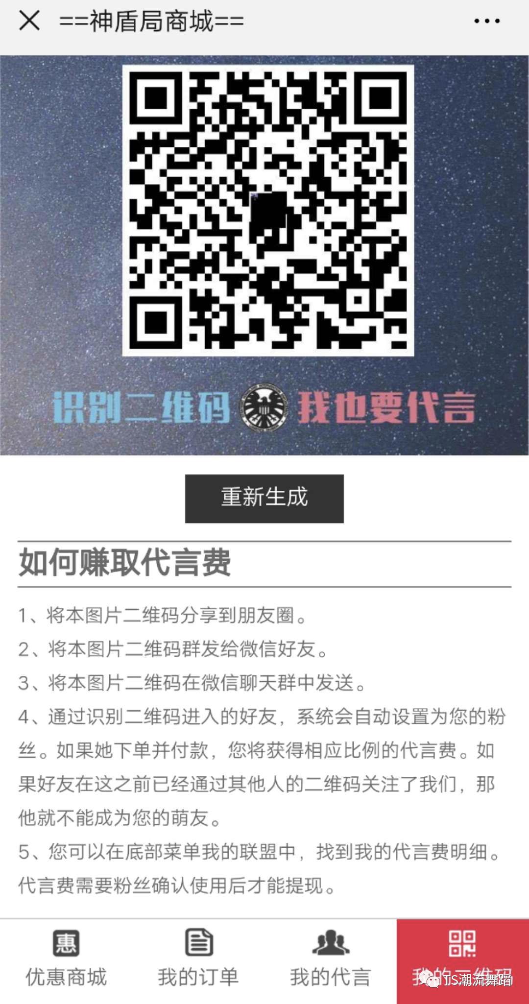 4.在商城页面点击“我的二维码”会生成自己的二维码图片,长按保存图片,可以分享朋友圈