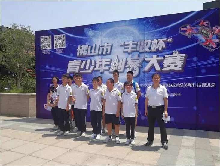 为能让无人机创客兴趣班学生得到更好的锻炼,学校选派11名学生在6月10号(周日)参加2018年首届佛山市“丰收杯”青少年创客大赛。